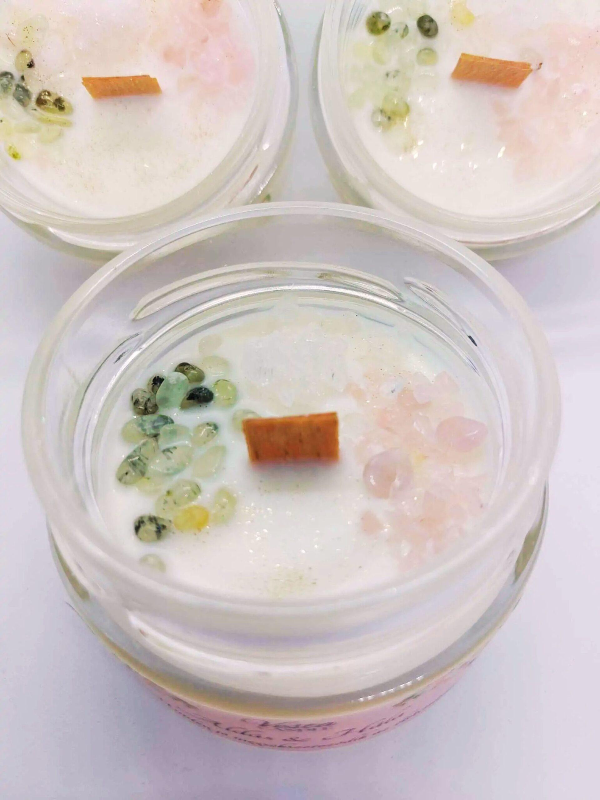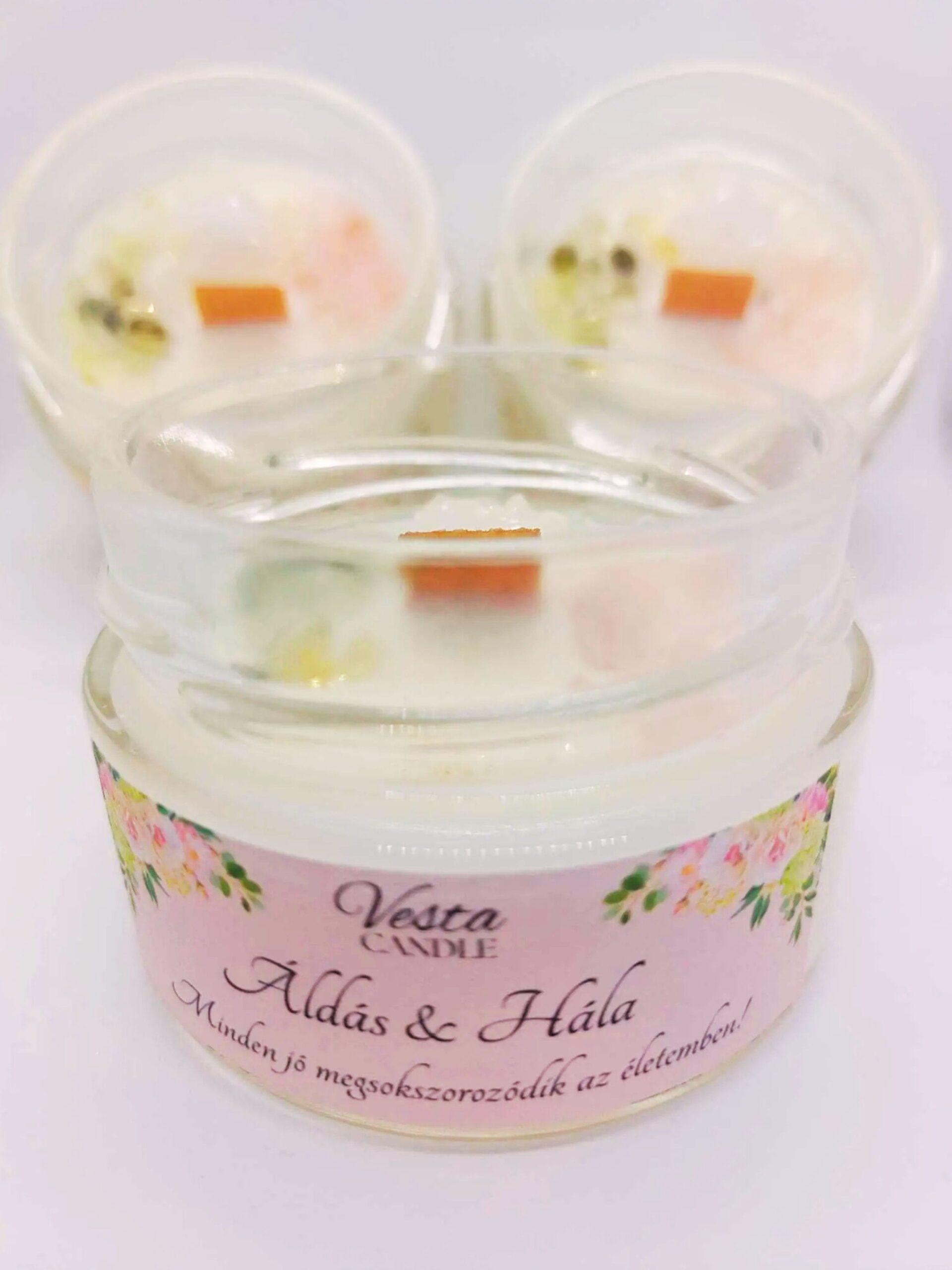 100% természetes szójaviaszból, ropogós fakanóccal és mennyei bazsarózsa illattal készült.