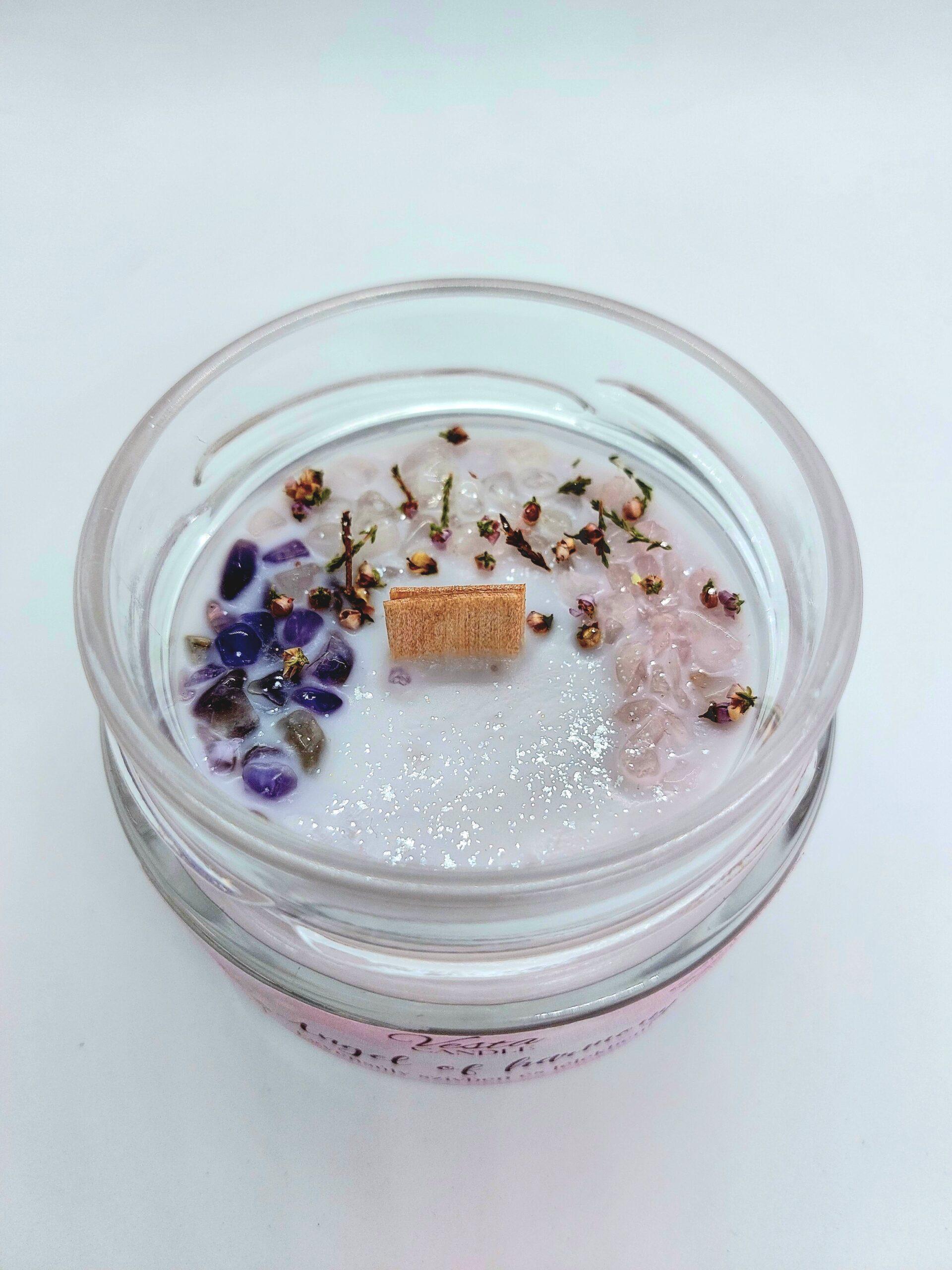 A Harmónia Angyalának ihletésével, természetes szójaviaszból, ropogós fakanóccal készült. Illatjegyeiben megtalálható a kubeba, levendula és vanília. A tetejét ametiszt, hegyikristály és rózsakvarc ásványok díszítik, amelyek segítenek egyensúlyba kerülni.