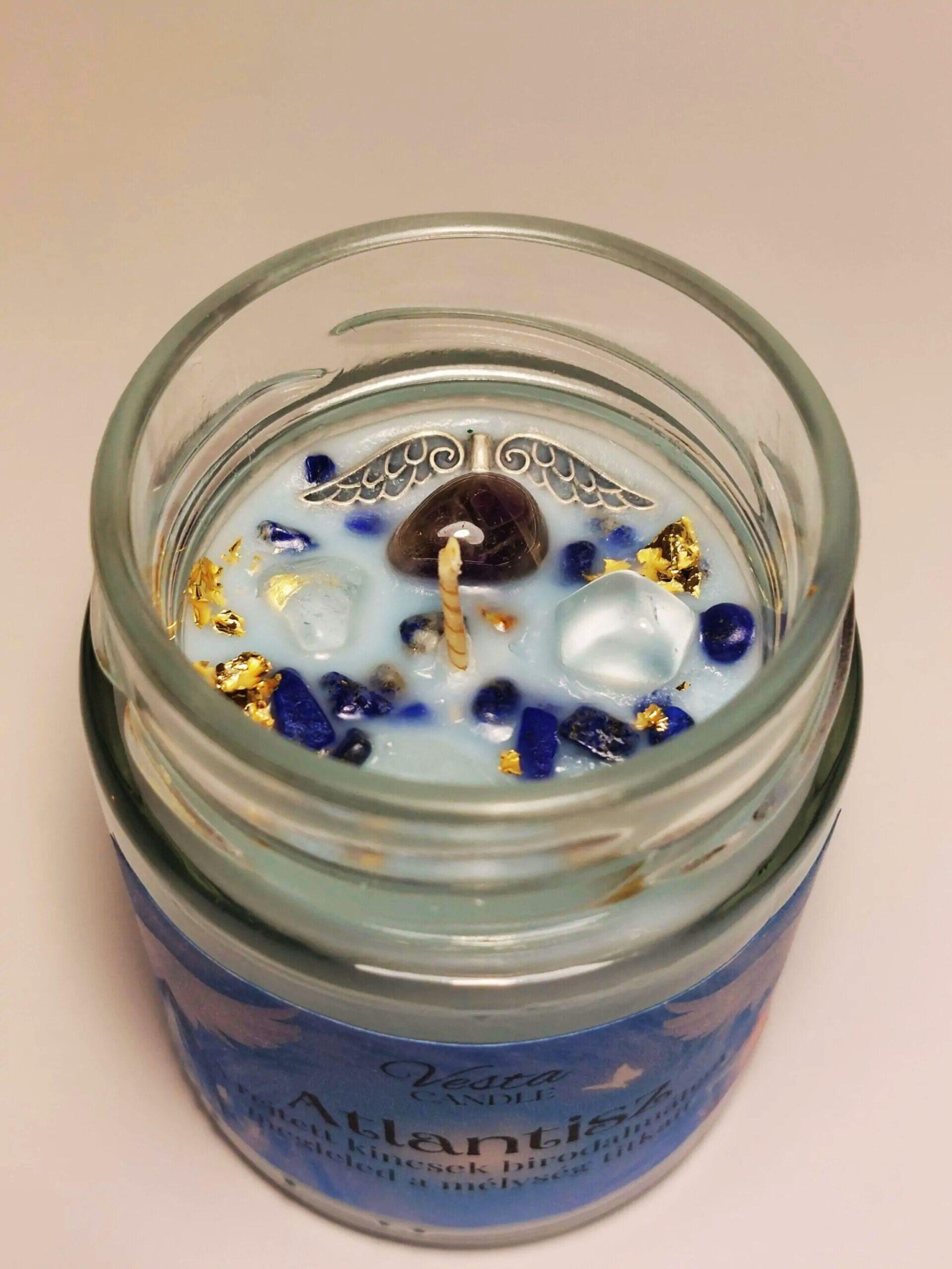 Az ásványok együttesen segíthetnek, hogy megnyithasd a tudatodat az Atlantiszból érkező ősi bölcsességre, amely most ebben a pillanatban is ott rejlik benned, de egyelőre az emlékezet fátyla takarja. Ezzel a gyertyával arra kérnek az angyalaid és égi segítőid, hogy emlékezz! Tárd fel az elvesztett, mélyen eltemetett tudást, amelynek lángja még mindig él fényedben.