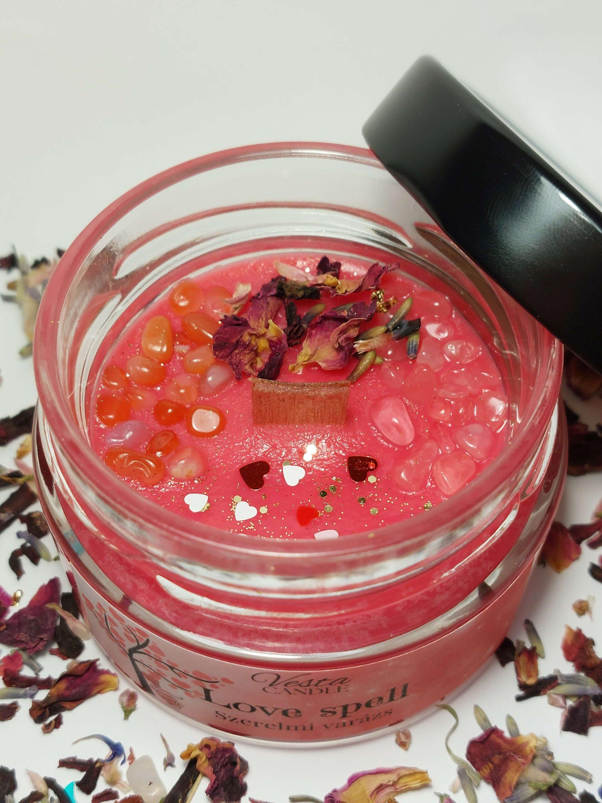 A Szerelem Angyalának ihletésével, természetes szójaviaszból készült, bazsarózsa és madagaszkári vanília illattal, karneol és rózsakvarc ásványokkal gyújt tüzet a szívekben.