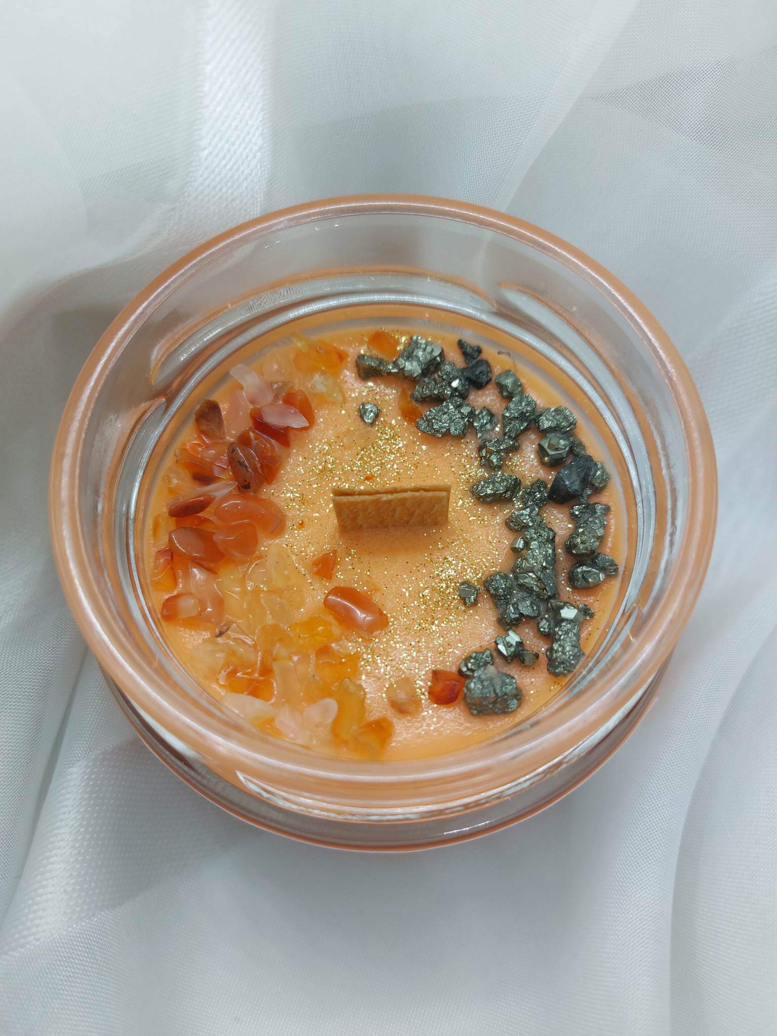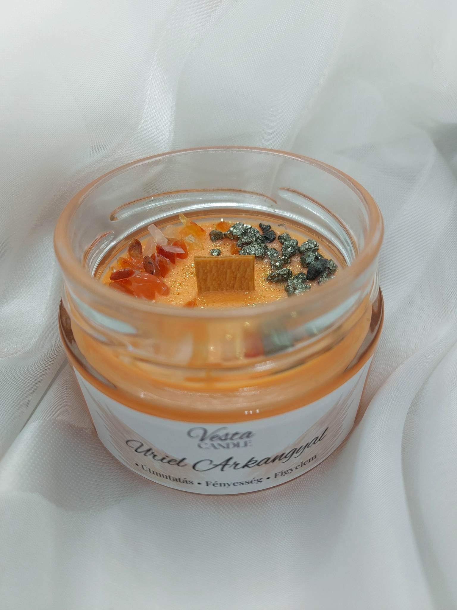 Uriel Arkangyal ihletésével, természetes szójaviaszból, ropogós fakanóccal készült. Nyírfa, szegfűszeg, rózsaszínbors illatjegyekkel, karneol és pirit ásványokkal.